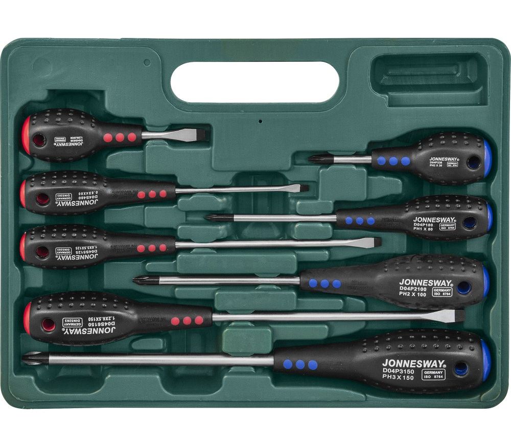 Главная/Каталог/ПРОФЕССИОНАЛЬНЫЙ ИНСТРУМЕНТ(Продукция Прайд)/Jonnesway/Инструмент для работы с внутренним профилем/Наборы отверток/D04PP08S Набор отверток стержневых FULL STAR, 8 предметов