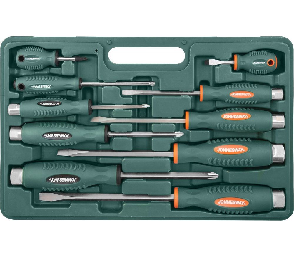 Главная/Каталог/ПРОФЕССИОНАЛЬНЫЙ ИНСТРУМЕНТ(Продукция Прайд)/Jonnesway/Инструмент для работы с внутренним профилем/Наборы отверток/D70PP10S Набор отверток стержневых ударных, силовых под ключ, 10 предметов
