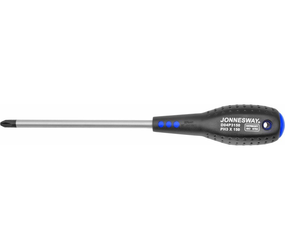 Главная/Каталог/ПРОФЕССИОНАЛЬНЫЙ ИНСТРУМЕНТ(Продукция Прайд)/Jonnesway/Инструмент для работы с внутренним профилем/Отвертки крестовые PHILIPS/D04P3150 Отвертка стержневая крестовая FULL STAR, PH3х150 мм