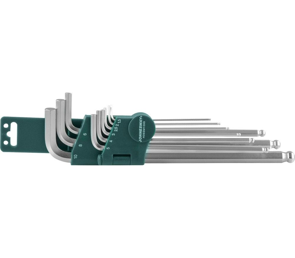 Главная/Каталог/ПРОФЕССИОНАЛЬНЫЙ ИНСТРУМЕНТ(Продукция Прайд)/Jonnesway/Инструмент для работы с внутренним профилем/Угловые ключи шестигранные/H06SM109S Комплект угловых шестиграников EXTRA LONG с шаром 1,5-10мм, 9 предметов S2 материал