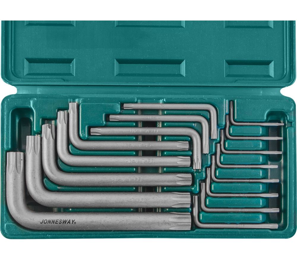 Главная/Каталог/ПРОФЕССИОНАЛЬНЫЙ ИНСТРУМЕНТ(Продукция Прайд)/Jonnesway/Инструмент для работы с внутренним профилем/Угловые ключи TORX/H0816S Набор ключей торцевых TORX® Т6-70, 16 предметов