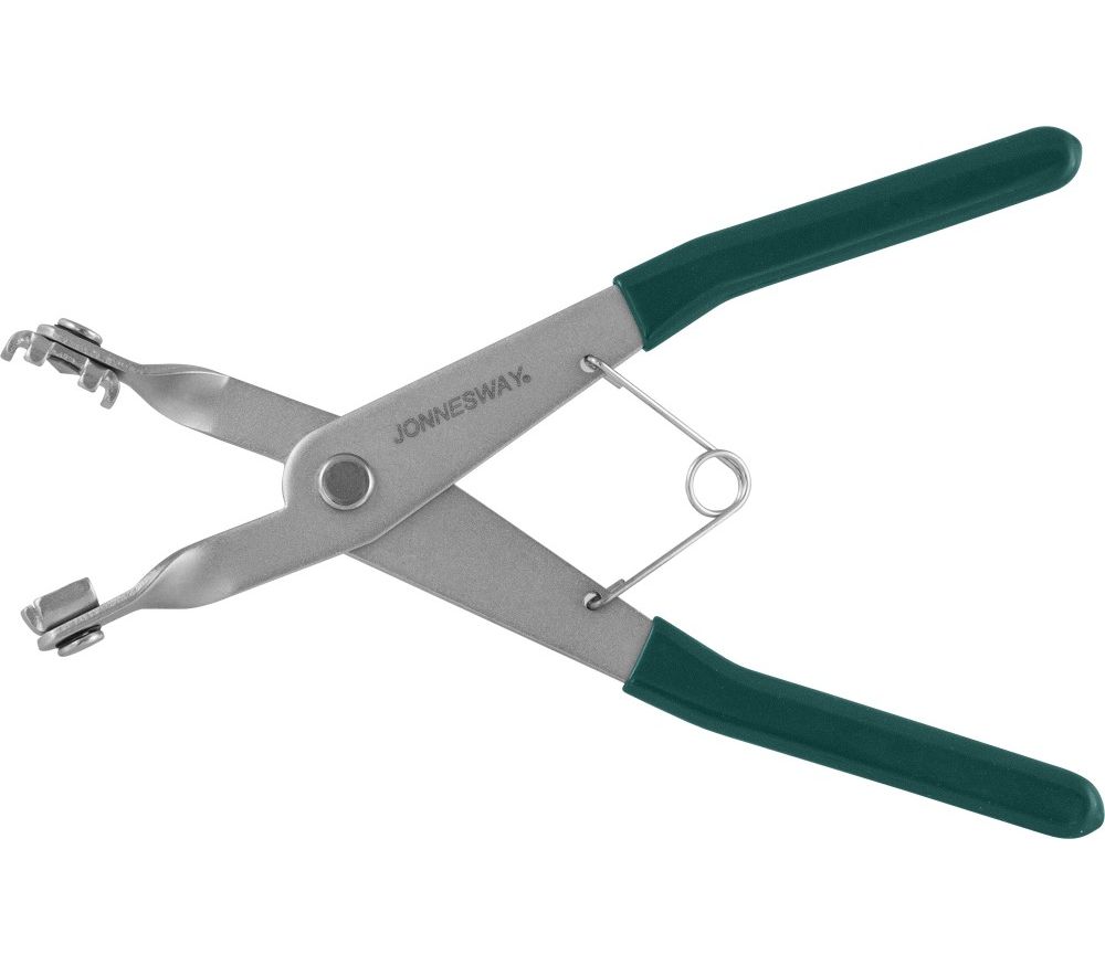 Инструмент применяется для снятия пружинных хомутов систем охлаждения. С-образные захваты свободно вращаются вокруг своей оси, что делает щипцы удобными при использовании в труднодоступных местах. Изделие изготовлено из стали, имеет защитное хромоникелевое покрытие и обливные ПХВ чехлы рукояток.