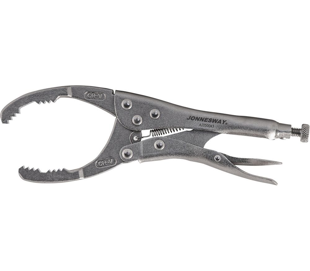 Главная/Каталог/ПРОФЕССИОНАЛЬНЫЙ ИНСТРУМЕНТ(Продукция Прайд)/Jonnesway/Инструмент специального назначения/Инструмент для ремонта и обслуживания двигателя/Инструмент для работы с системой смазки/AI050043 Щипцы для масляных фильтров с фиксированным захватом 53-118 мм
