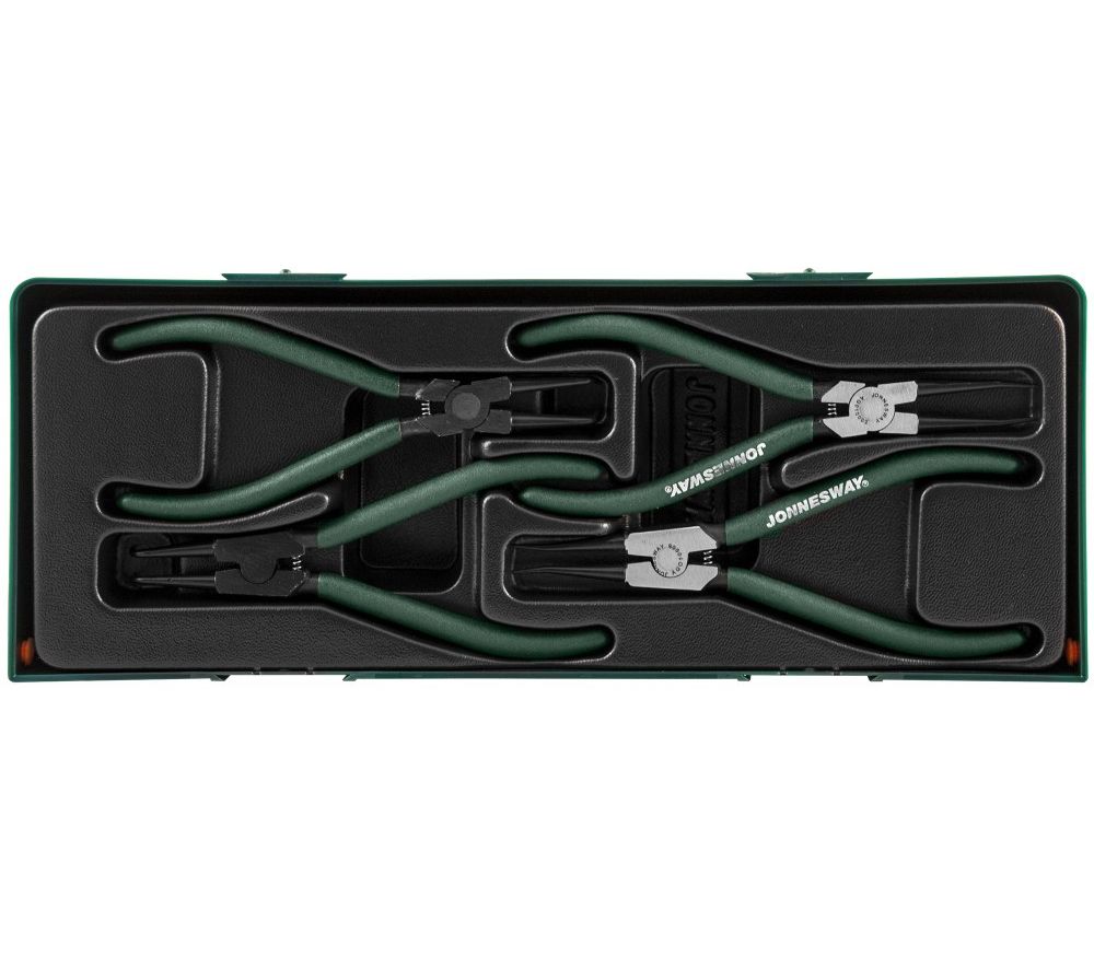 Главная/Каталог/ПРОФЕССИОНАЛЬНЫЙ ИНСТРУМЕНТ(Продукция Прайд)/Jonnesway/Наборы инструмента/Наборы инструмента (ложементы)/AG010002SC Ложемент с пластиковой крышкой, набор щипцов 7" для стопорных колец, 4 предмета.