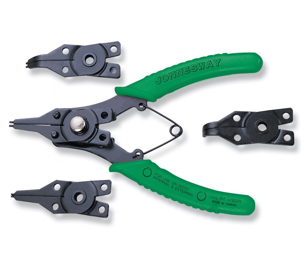 Главная/Каталог/ПРОФЕССИОНАЛЬНЫЙ ИНСТРУМЕНТ(Продукция Прайд)/Jonnesway/Шарнирно-губцевый инструмент/Щипцы для стопорных колец/P266 Щипцы универсальные со сменными рабочими частями для стопорных колец в наборе,160 мм, 6-50 мм, 4 предмета