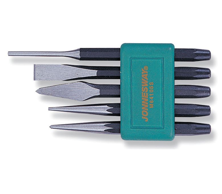 Главная/Каталог/ПРОФЕССИОНАЛЬНЫЙ ИНСТРУМЕНТ(Продукция Прайд)/Jonnesway/Ударный инструмент/Наборы выколоток,кернов, зубил/M64105S Набор ударно-режущего инструмента, 5 предметов