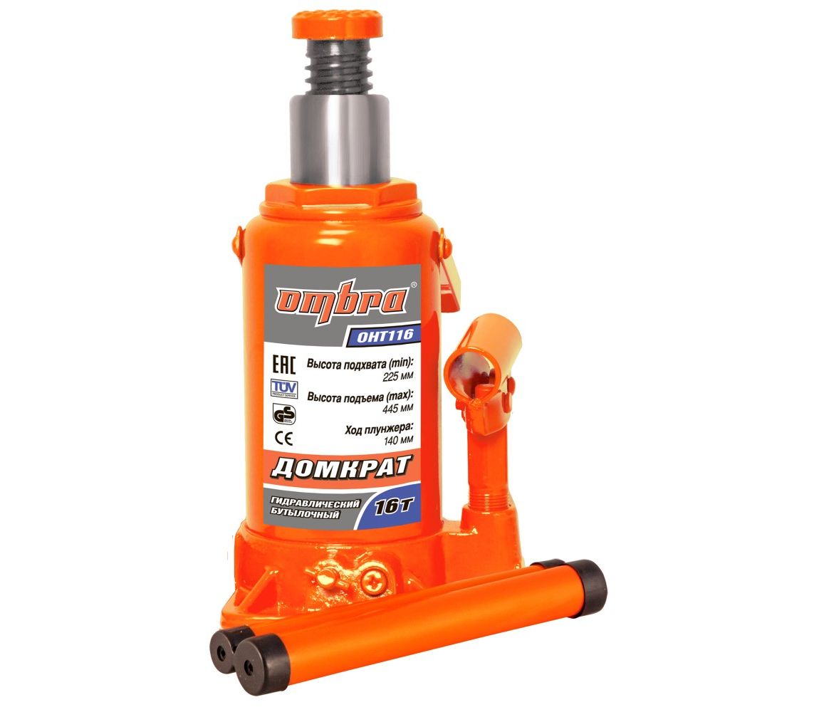 Главная/Каталог/ПРОФЕССИОНАЛЬНЫЙ ИНСТРУМЕНТ(Продукция Прайд)/Ombra/Гаражное оборудование/Бутылочные домкраты/Домкрат гидравлический профессиональный 16 т 225-445 мм