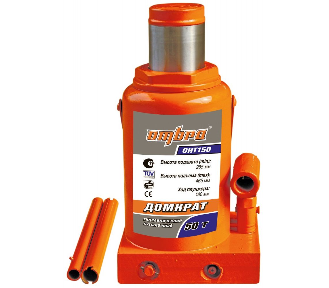 Главная/Каталог/ПРОФЕССИОНАЛЬНЫЙ ИНСТРУМЕНТ(Продукция Прайд)/Ombra/Гаражное оборудование/Бутылочные домкраты/OHT150 Домкрат гидравлический профессиональный 50 т., 285-465 мм