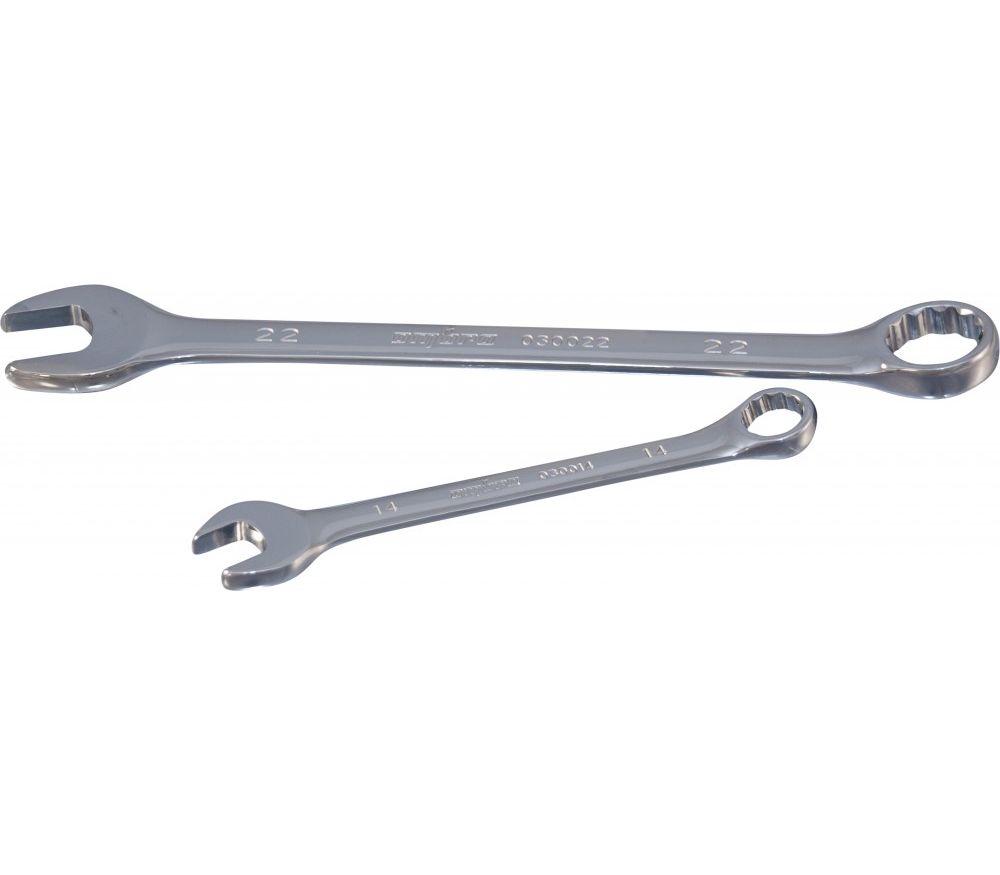 Самый распространенный гаечный ключ представляет собой конструкцию, объединяющую рожковую и накидную части. Инструмент изготовлен из высоколегированной стали, по стандарту ANSI/ASME B107.6 и соответствует требованиям ГОСТ 2838-80. Чечевичное сечение рукоятки с увеличенной толщиной ребра позволяет развить более высокий крутящий момент по сравнению с ключами двутаврового сечения европейского типа. Устойчивое к механическому воздействию и агрессивным средам зеркальное, трехслойное, хромоникелевое покрытие облегчает удаление загрязнений с инструмента после работы. Сочетание двух одноразмерных профилей компенсируют недостатки каждого в отдельности, обеспечивая передачу максимально возможной нагрузки на крепеж, при использовании накидной части и удобство использования рожковой части в труднодоступных местах.