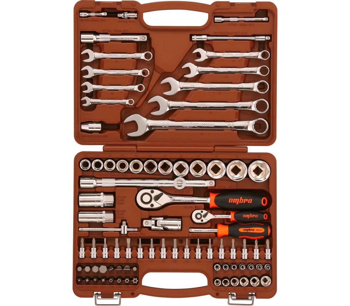 Главная/Каталог/ПРОФЕССИОНАЛЬНЫЙ ИНСТРУМЕНТ(Продукция Прайд)/Ombra/Наборы инструмента/Наборы инструмента универсальные/OMT82S Набор инструмента универсальный 1/4", 1/2"DR, 82 предмета