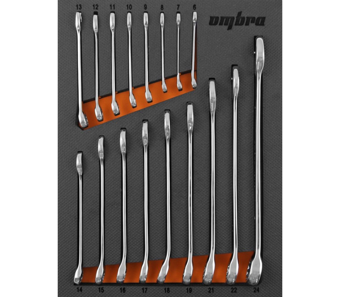 Главная/Каталог/ПРОФЕССИОНАЛЬНЫЙ ИНСТРУМЕНТ(Продукция Прайд)/Ombra/Наборы инструмента/Наборы инструмента в ложементе/OMT17STE Набор ключей комбинированных в EVA ложементе 280х375 мм, 17 предметов