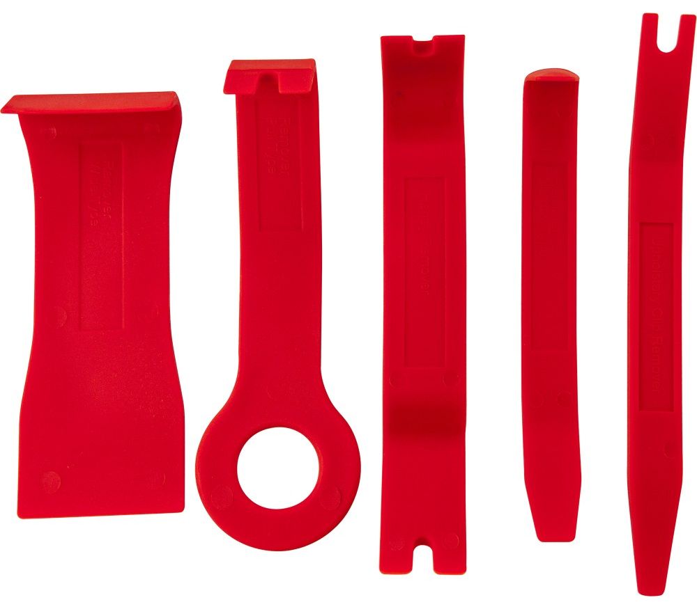 ИНСТРУМЕНТЫ, ВХОДЯЩИЕ В СОСТАВ НАБОРА, ПРИМЕНЯЮТСЯ ДЛЯ ДЕМОНТАЖА ВНУТРЕННИХ ДЕКОРАТИВНЫХ ПАНЕЛЕЙ САЛОНА АВТОМОБИЛЯ. ОСОБАЯ ФОРМА СЪЕМНИКОВ ПРЕДНАЗНАЧЕНА ДЛЯ СНЯТИЯ ПАНЕЛЕЙ БЕЗ ПОВРЕЖДЕНИЙ. СПЕЦИАЛЬНЫЙ МАТЕРИАЛ, ПРИМЕНЯЕМЫЙ ДЛЯ ИЗГОТОВЛЕНИЯ ДЕТАЛЕЙ НАБОРА, НЕ ПОВРЕЖДАЕТ ДЕКОРАТИВНЫЕ ЭЛЕМЕНТЫ САЛОНА.