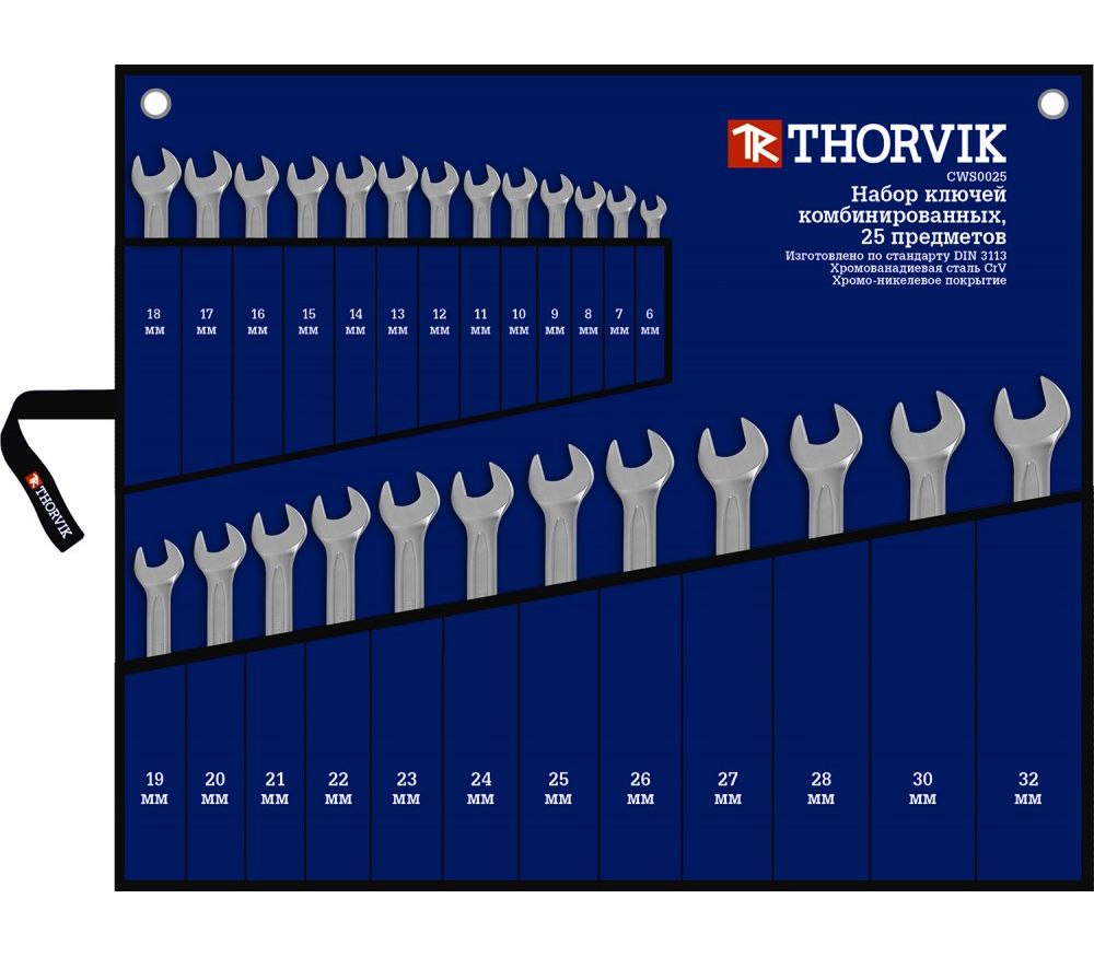 Главная/Каталог/ПРОФЕССИОНАЛЬНЫЙ ИНСТРУМЕНТ(Продукция Прайд)/Thorvik/Ключи/Комбинированные и наборы из них/CLASSIC/CWS0025 Набор ключей гаечных комбинированных в сумке, 6-32 мм, 25 предметов