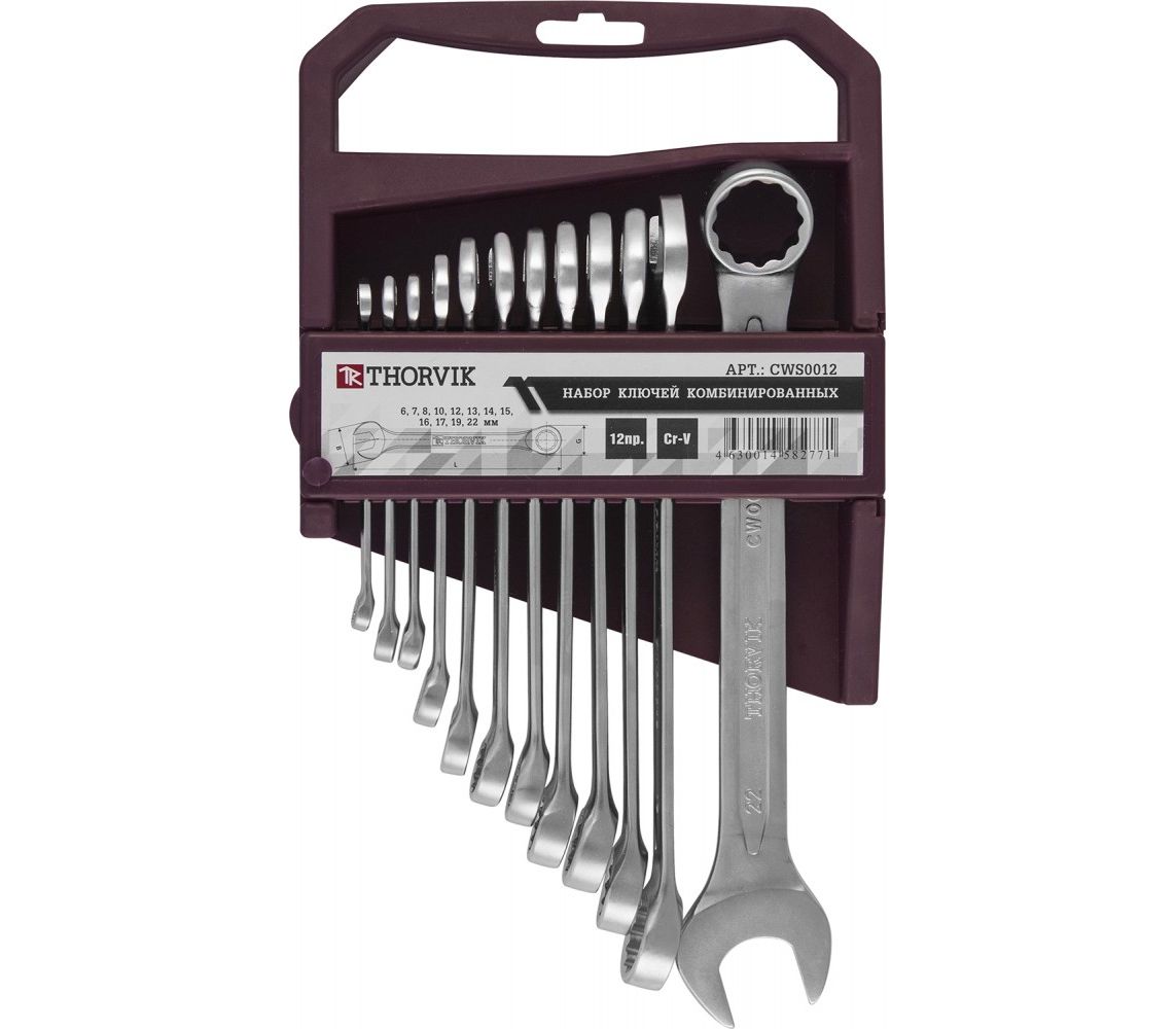 Главная/Каталог/ПРОФЕССИОНАЛЬНЫЙ ИНСТРУМЕНТ(Продукция Прайд)/Thorvik/Ключи/Комбинированные и наборы из них/CLASSIC/CWS0012 Набор ключей гаечных комбинированных на держателе, 6-22 мм, 12 предметов