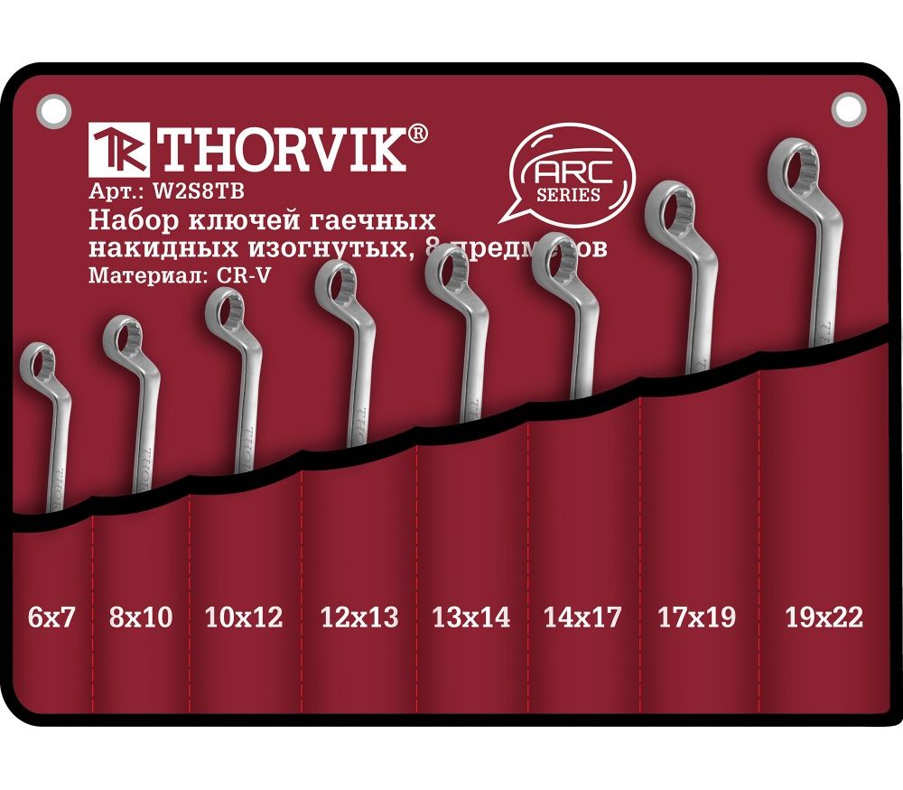 W2S8TB Набор ключей гаечных накидных изогнутых серии ARC в сумке, 6-22 мм, 8 предметов W2S8TB