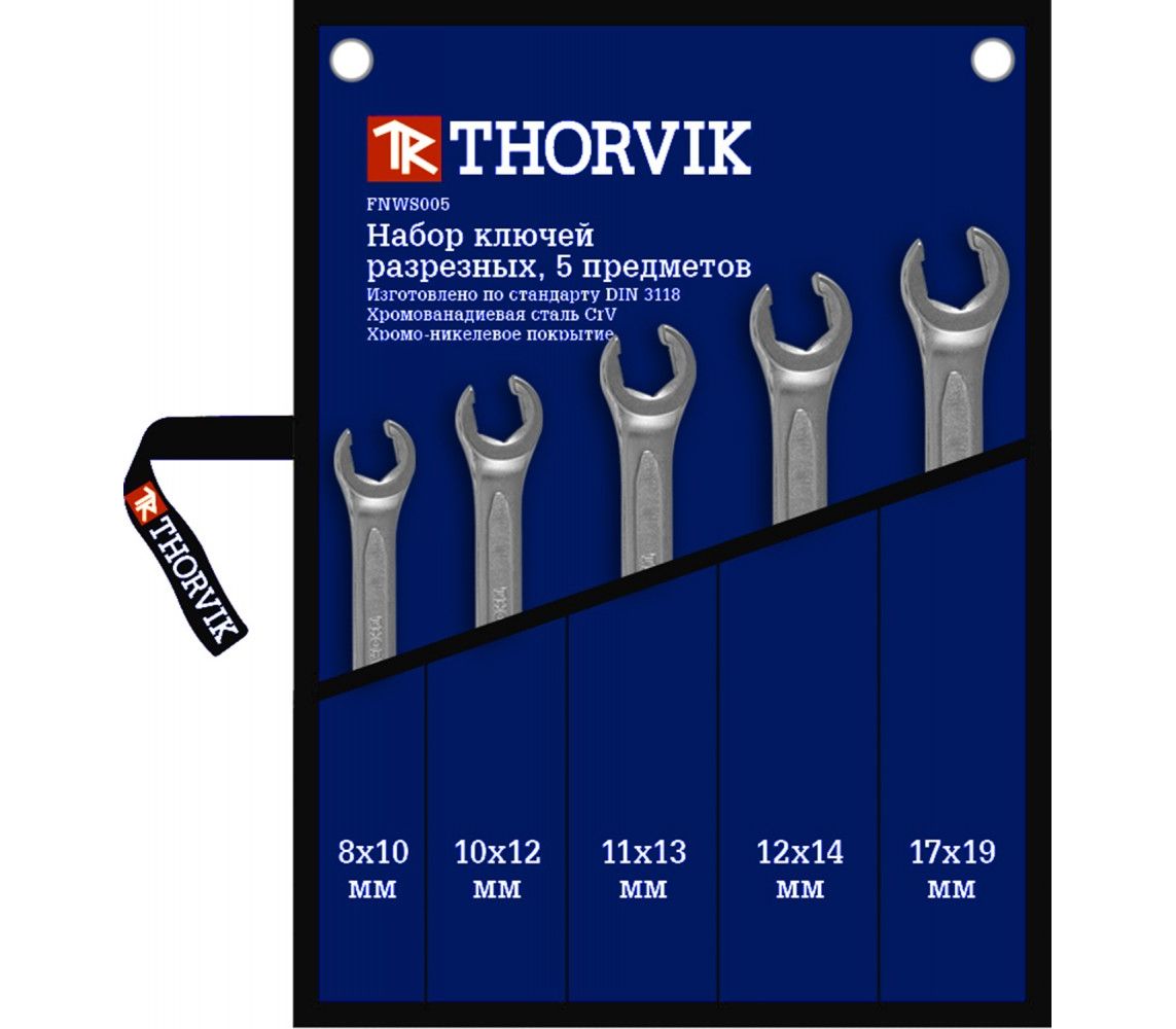Главная/Каталог/ПРОФЕССИОНАЛЬНЫЙ ИНСТРУМЕНТ(Продукция Прайд)/Thorvik/Ключи/Разрезные и наборы из них/CLASSIC/FNWS005 Набор ключей гаечных разрезных в сумке, 8-19 мм, 5 предметов