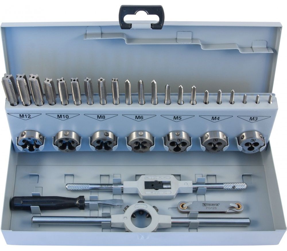 MTDS32 Набор метчиков трехпроходных ручных универсальных и плашек круглых ручных серий COMBO М3-М12, HSS-G, 32 предмета MTDS32