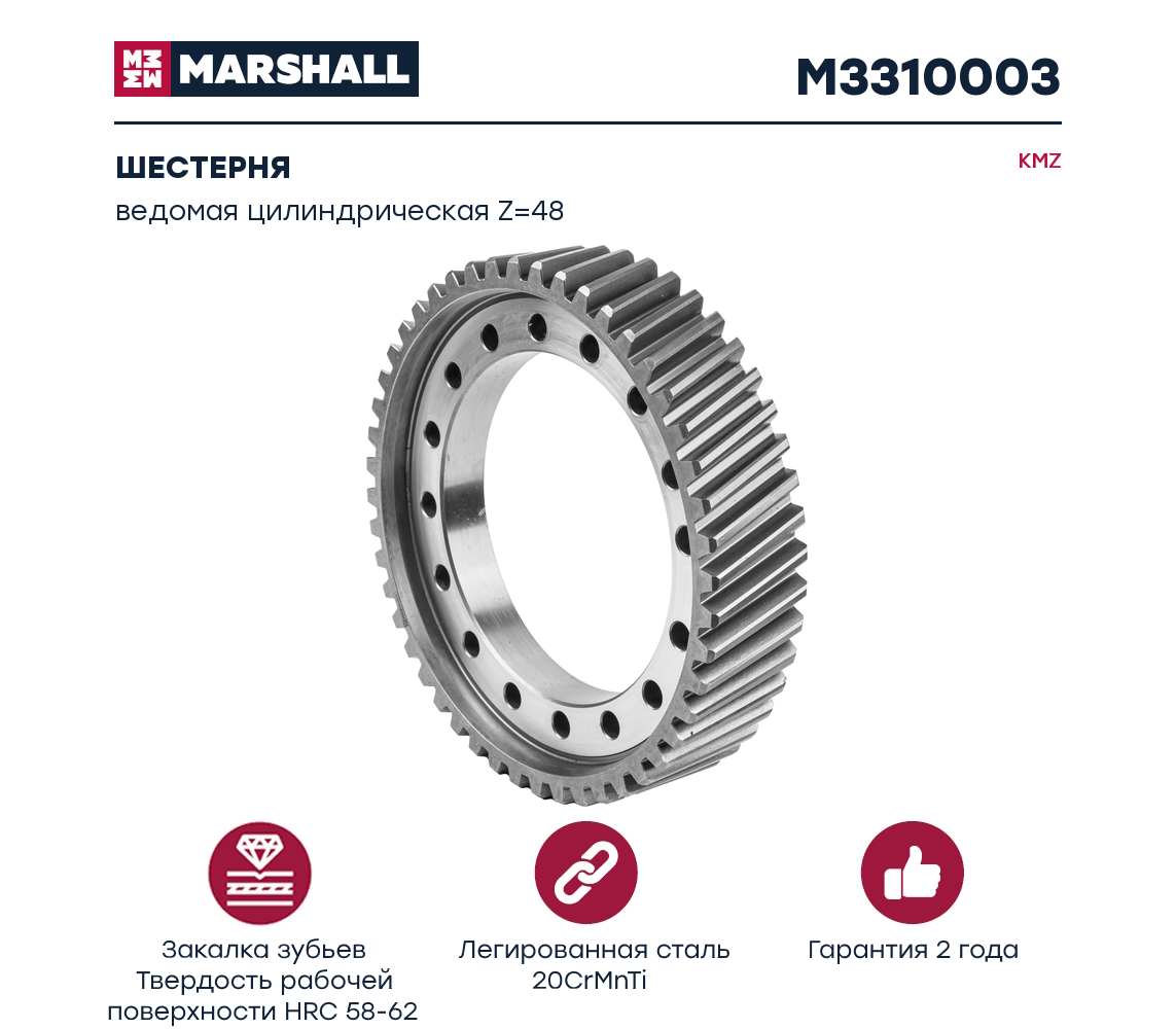 5320-2402120-30/M3310003 Шестерня редуктора цилиндрическая ведомая 48 зуб КАМАЗ