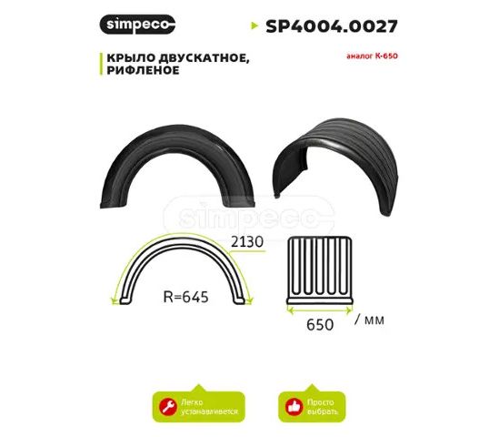 К-650/SP4004.0027 Крыло заднее 2-х скатное пластик КАМАЗ